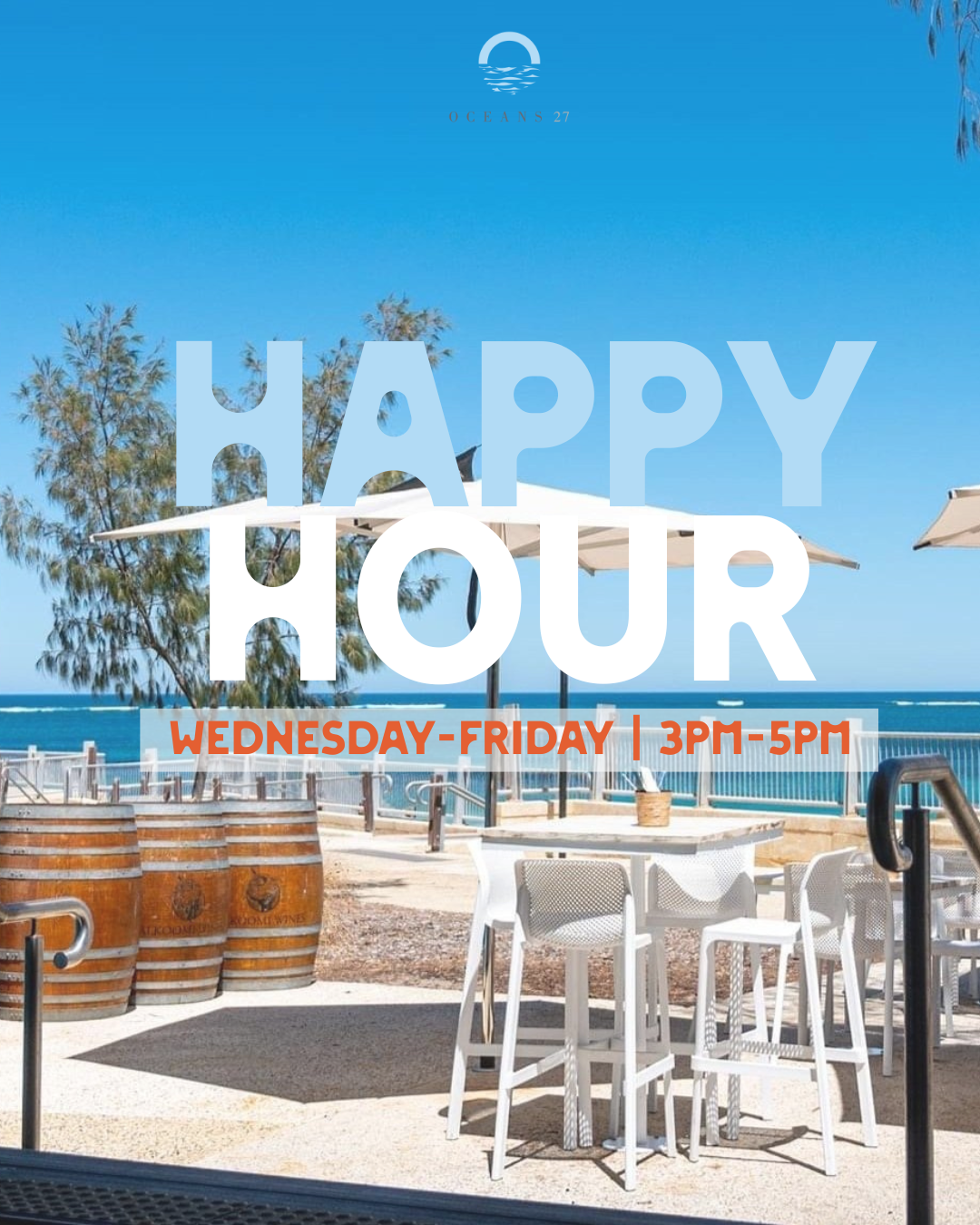 Catch the sounds of the coast at Oceans 27! From live solos, duos and DJs, all the latest entertainment is listed here — come enjoy the tunes, the sunset, and the vibe.